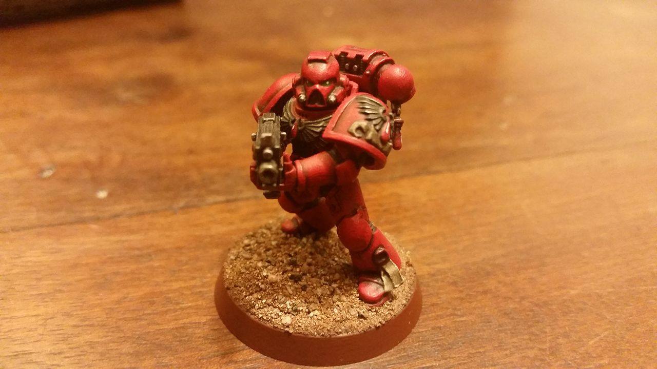 Dopo diversi mesi di duro lavoro, ho finalmente ultimato la prima squadra tattica del mio esercito di Angeli Sanguinari, vincendo definitivamente la “paura del rosso” che mi portavo dietro da qualche anno (NdD: per chi se lo domandasse, semplicemente avevo avuto, agli albori della mia carriera come hobbista, diversi problemi a lavorare con le vernici rosse, che fossero Citadel o di altre marche. Per qualche strano motivo finivo sempre con il pasticciarle o rendere gli strati troppo spessi e grumosi! Così, gira e rigira, ho finito per concentrarmi più sull’uso di altri colori, ad esempio il blu, con il quale mi trovavo decisamente più a mio agio).